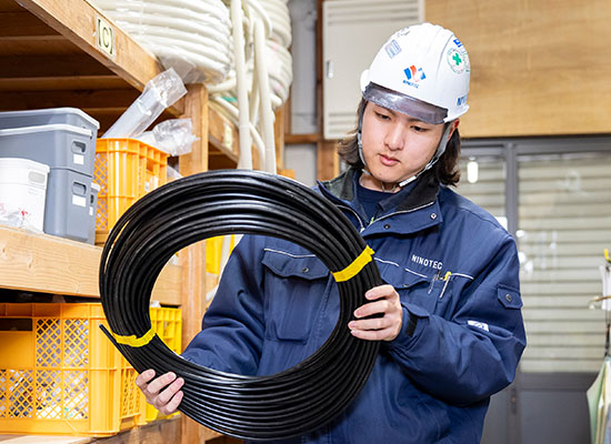 学校では、現在の業務で必要な通信分野の知識を学んでいたわけではありません。入社当初は分からないことばかりでしたが、先輩と現場へ出て、一つずつ覚えていきました。 印象に残っているのは、電話交換機の設定を任されたときです。専用ソフトでデータを調整する作業でしたが、「どこを触ればいいんだろう」と手が止まりました。通信は配線だけでなく、設定があって初めて機能します。それでも自分で考え、分からない部分は先輩に確認する。その積み重ねで理解できることが増えていきました。入社後に第二種電気工事士も取得しています。現場で経験を重ねるたび、自分の成長を実感できる。それが、この仕事の面白さです。